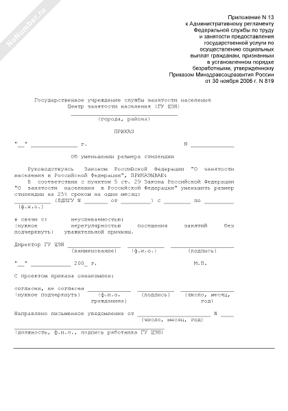 - 759Приказ об уменьшении размера стипендии, выплачиваемой гражданам в период профессиональной подготовки, переподготовки и повышения квалификации по направлению органов службы занятости