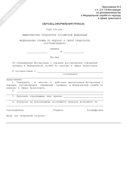 - 808Приказ об утверждении инструкции о порядке рассмотрения обращений граждан в Федеральной службе по надзору в сфере транспорта