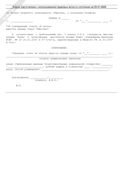 - 812Приказ об утверждении отчета об итогах выпуска ценных бумаг закрытого акционерного общества