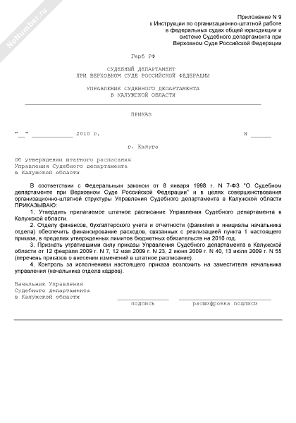 - 817Приказ об утверждении штатного расписания Управления Судебного департамента в Калужской области