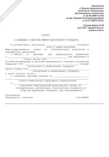 - 105Приказ о введении в действие межгосударственного стандарта (для ГОСТ, разработанного взамен в/части) (типовая форма № 38)