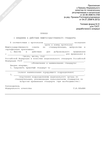 - 111Приказ о введении в действие межгосударственного стандарта (для ГОСТ, разработанного впервые) (типовая форма № 31)