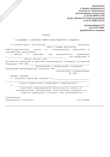 - 109Приказ о введении в действие межгосударственного стандарта (для ГОСТ ИСО, разработанного впервые) (типовая форма № 32)