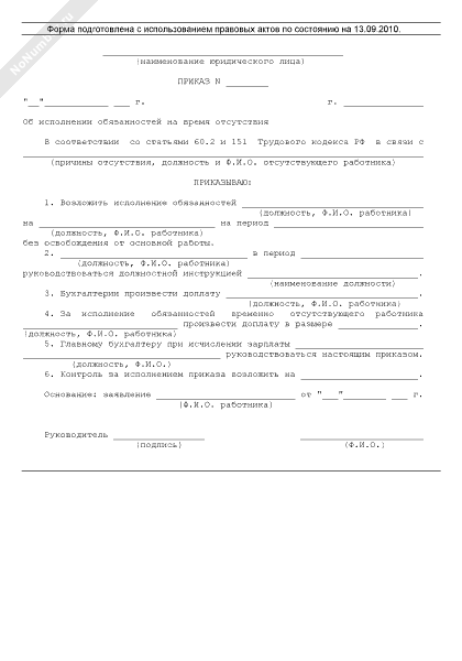 Приказ об исполнении обязанностей на время отсутствия (общая форма)