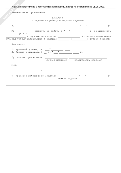 Приказ (распоряжение) о переводе работников на другую работу. Унифицированная форма № Т-5А