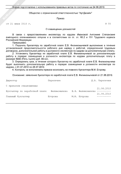 Приказ о совмещении должностей