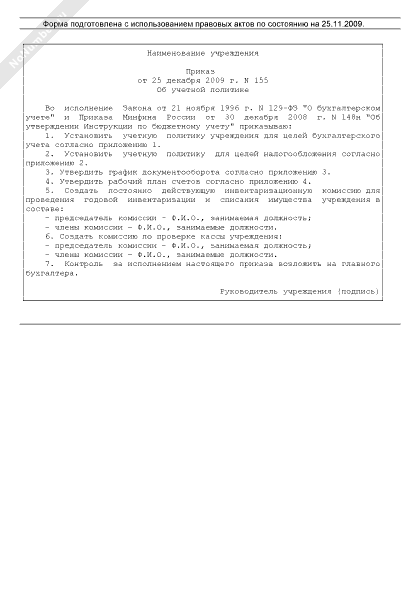 Приказ об учетной политике бюджетного учреждения