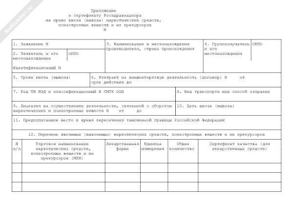 - 243Приложение к сертификату Росздравнадзора на право ввоза (вывоза) наркотических средств, психотропных веществ и их прекурсоров