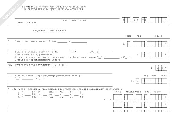 - 246Приложение к статистической карточке на преступление по делу частного обвинения (приложение к форме № 6)