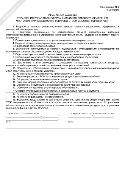 - 256Примерные функции управления управляющей организации по договору управления многоквартирным домом с Товариществом собственников жилья (приложение к договору управления многоквартирным домом в городе Москве)