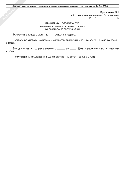 - 257Примерный объем услуг, оказываемых в месяц (приложение к договору на юридическое обслуживание)