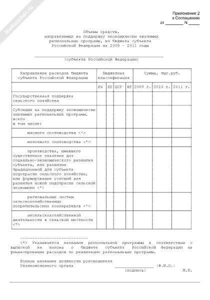 - 122Объемы средств, направляемых на поддержку экономически значимых региональных программ, из бюджета субъекта Российской Федерации на 2009–2011 годы (приложение к соглашению о порядке и условиях предоставления субсидии из федерального бюджета бюджету субъекта Российской Федерации на поддержку экономически значимых региональных программ)