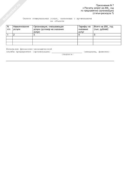 - 132Оплата коммунальных услуг, связанных с проживанием на объекте (приложение к расчету затрат на год по предприятию (организации))