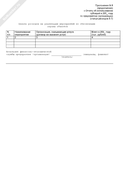 - 138Оплата расходов на реализацию мероприятий по обеспечению охраны объектов (приложение к отчету предприятия (организации) об использовании субсидии)