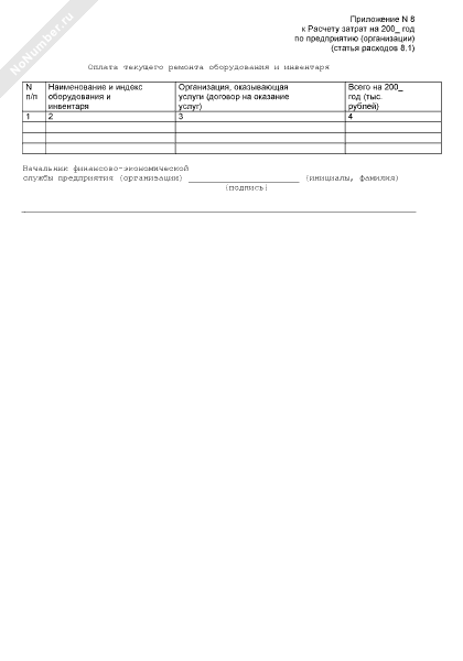 - 140Оплата текущего ремонта оборудования и инвентаря (приложение к расчету затрат на год по предприятию (организации))