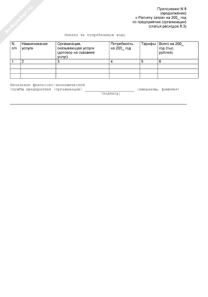 - 130Оплата за потребляемую воду (приложение к расчету затрат на год по предприятию (организации))