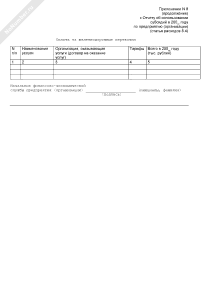 - 127Оплата за железнодорожные перевозки (приложение к отчету предприятия (организации) об использовании субсидии)