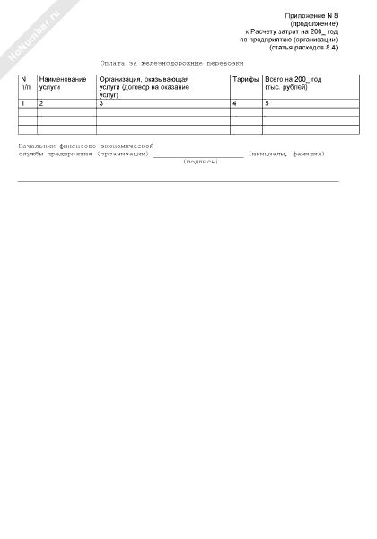 - 126Оплата за железнодорожные перевозки (приложение к расчету затрат на год по предприятию (организации))