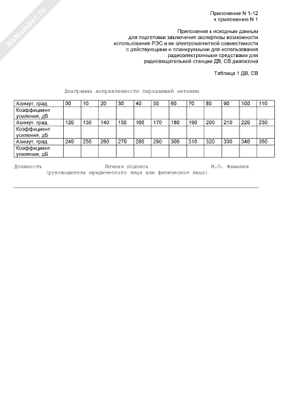 Диаграмма направленности передающей антенны (приложение к исходным данным для подготовки заключения экспертизы возможности использования РЭС и их электромагнитной совместимости с действующими и планируемыми для использования радиоэлектронными средствами для радиовещательной станции ДВ, СВ диапазона. форма № ИД-ДВ, СВ)