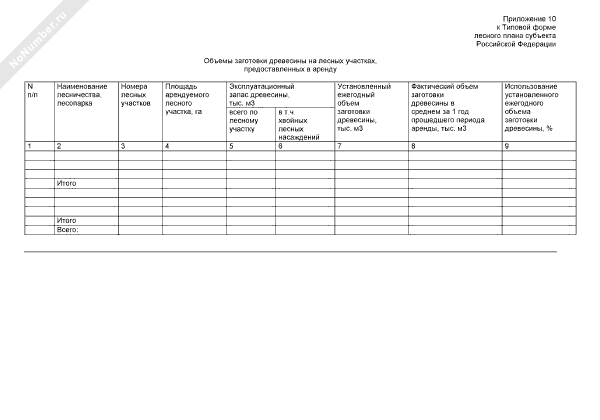 Объемы заготовки древесины на лесных участках, предоставленных в аренду (приложение к типовой форме лесного плана субъекта Российской Федерации)