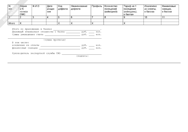 Приложение к акту медико-экономической экспертизы счета-фактуры и реестра за оказанную медицинскую помощь в поликлинике (стационаре)