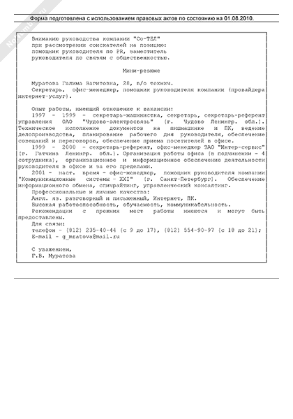 Пример представлен в форматах DOC и RTF, поэтому откроется в любых версиях Microsoft Word или Open Office.