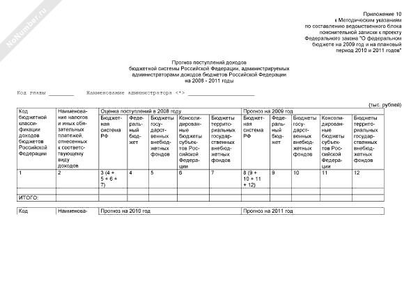Прогноз поступлений доходов бюджетной системы Российской Федерации, администрируемых администраторами доходов бюджетов Российской Федерации на 2008–2011 годы (рекомендуемый образец заполнения)