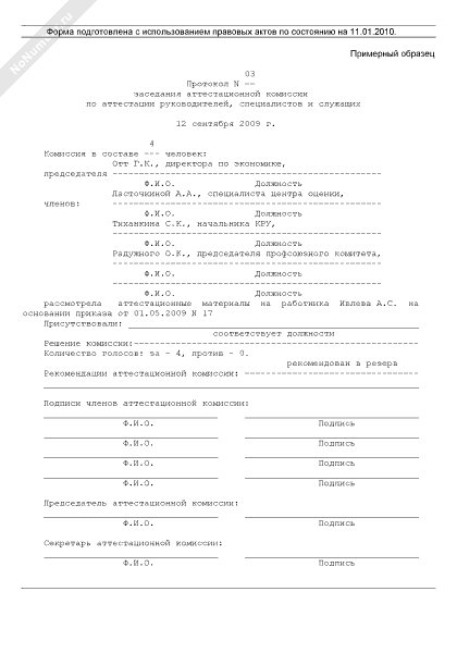 - 403Протокол заседания аттестационной комиссии по аттестации руководителей, специалистов и служащих организации