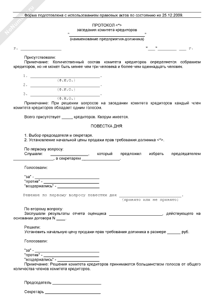 - 410Протокол заседания комитета кредиторов (общая форма)