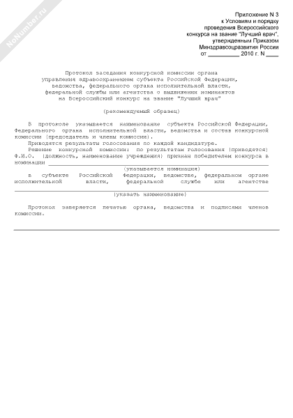 - 411Протокол заседания конкурсной комиссии органа управления здравоохранением муниципального образования о выдвижении номинантов на Всероссийский конкурс на звание «Лучший врач»