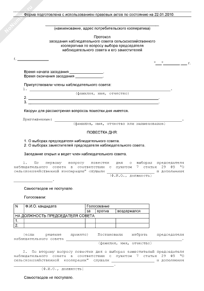 - 419Протокол заседания наблюдательного совета сельскохозяйственного кооператива по вопросу выбора председателя наблюдательного совета и его заместителей