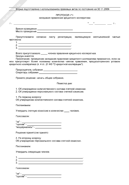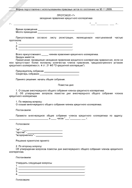- 408Протокол заседания правления по вопросу о созыве внеочередного общего собрания членов кредитного кооператива