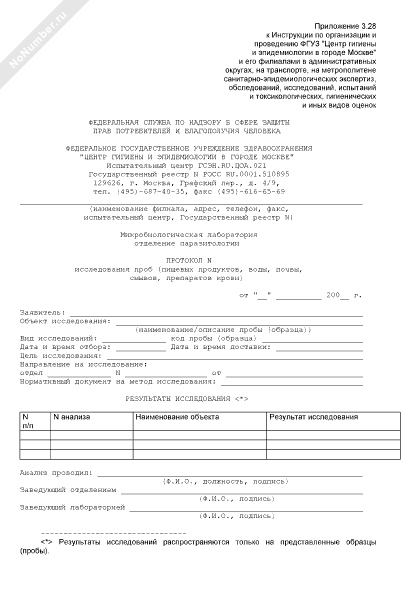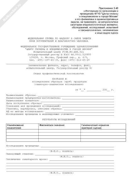 - 551Протокол исследования проб (пищевых продуктов, воды, почвы, смывов, препаратов крови)