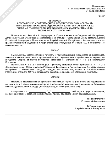 - 553Протокол к Соглашению между Правительством Российской Федерации и Правительством Азербайджанской Республики о безвизовых поездках граждан Российской Федерации и Азербайджанской Республики от 3 июля 1997 г.