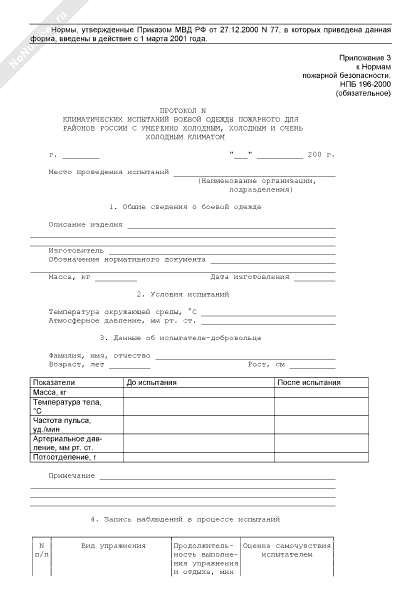 - 555Протокол климатических испытаний боевой одежды пожарного для районов России с умеренно холодным, холодным и очень холодным климатом