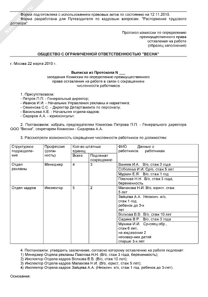 - 558Протокол комиссии по определению преимущественного права оставления на работе