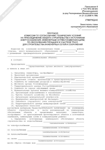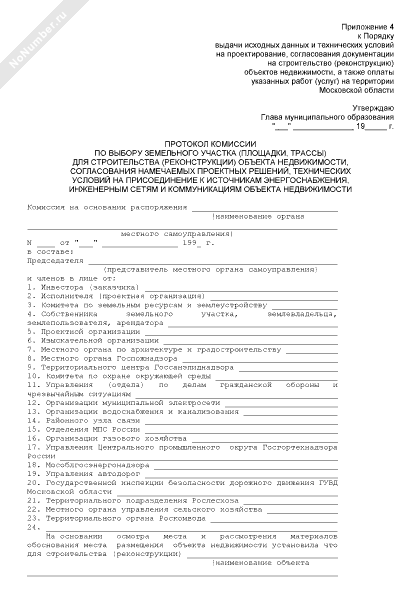 - 556Протокол комиссии по согласованию технических условий на присоединение объекта строительства к источникам энергоснабжения, инженерным сетям и коммуникациям, по обоснованию площадок и участков трасс для строительства инженерных сетей и сооружений на территории Московской области