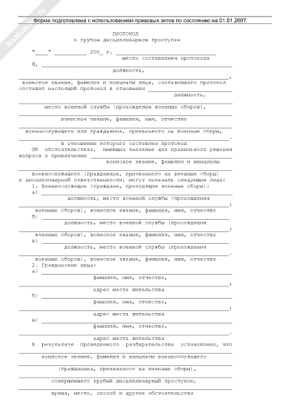 - 624Протокол о грубом дисциплинарном проступке военнослужащего