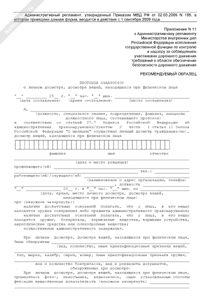 - 636Протокол о личном досмотре, досмотре вещей, находящихся при физическом лице