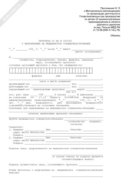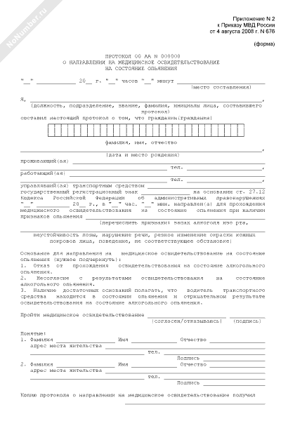 - 638Протокол о направлении на медицинское освидетельствование на выявление признаков опьянения