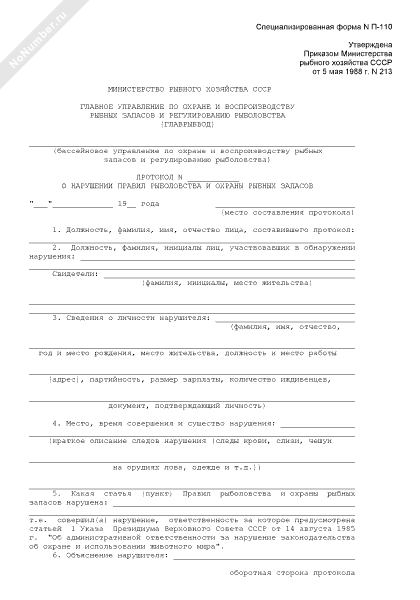 - 640Протокол о нарушении правил рыболовства и охраны рыбных запасов. Специализированная форма № П-110