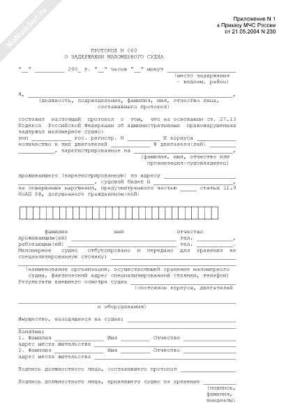 - 633Протокол о задержании маломерного судна на основании ст. 27.13 Кодекса Российской Федерации об административных правонарушениях