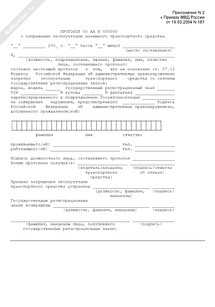 - 635Протокол о запрещении эксплуатации наземного транспортного средства в связи с совершением административного правонарушения