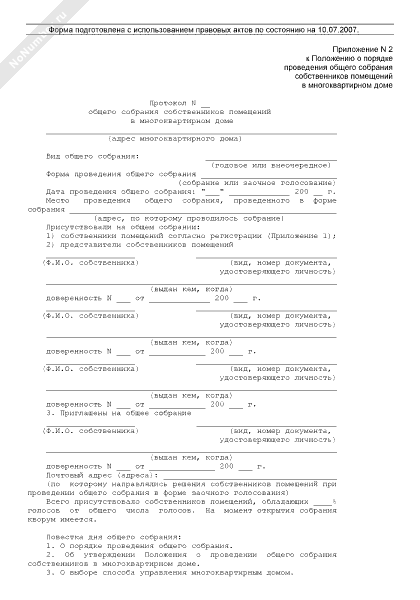 - 805Протокол общего собрания собственников помещений в многоквартирном доме (приложение к положению о порядке проведения общего собрания собственников помещений в многоквартирном доме)