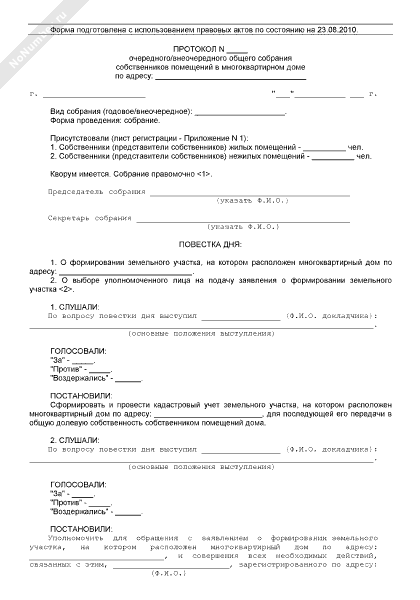 - 820Протокол общего собрания собственников помещений в многоквартирном доме по вопросу формирования земельного участка, на котором расположен многоквартирный дом