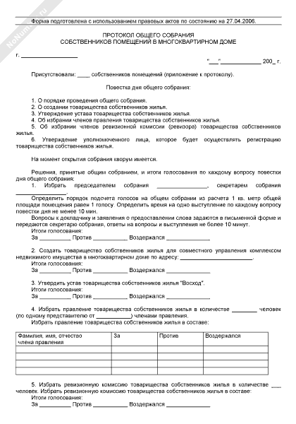 - 803Протокол общего собрания собственников помещений в многоквартирном доме о создании товарищества собственников жилья
