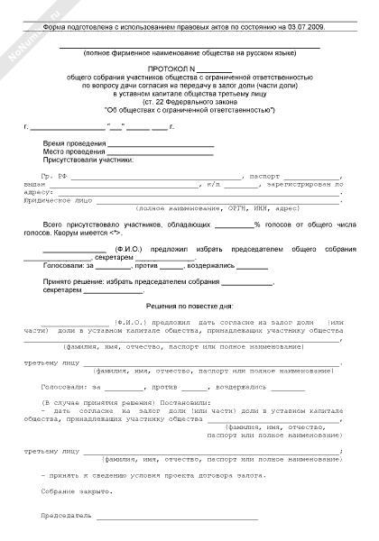 - 818Протокол общего собрания участников общества с ограниченной ответственностью по вопросу дачи согласия на передачу в залог доли (части доли) в уставном капитале общества третьему лицу