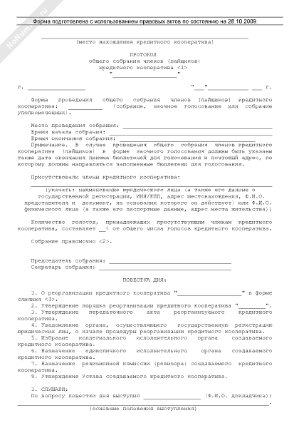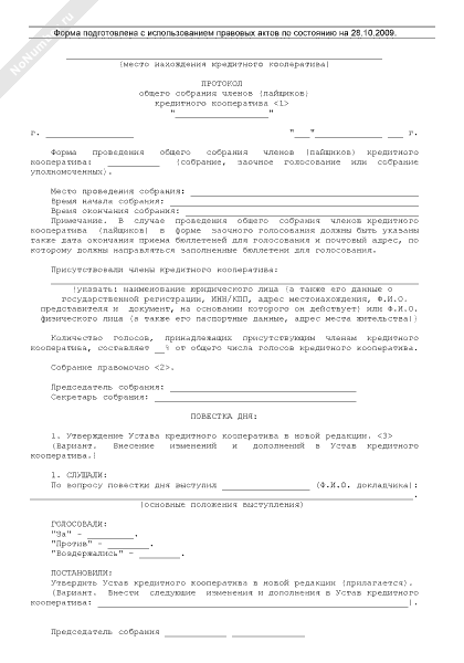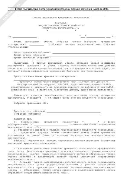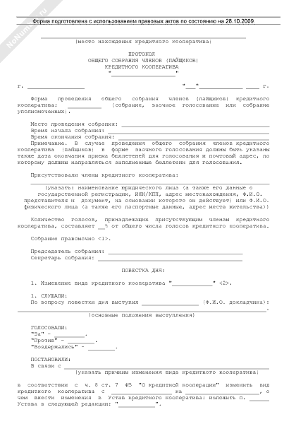 - 863Протокол общего собрания членов кредитного кооператива об изменении вида кредитного кооператива