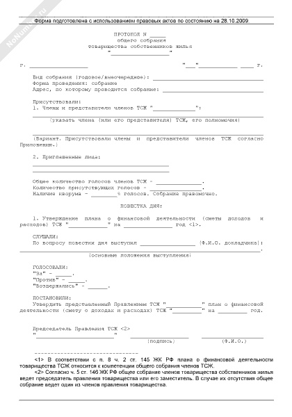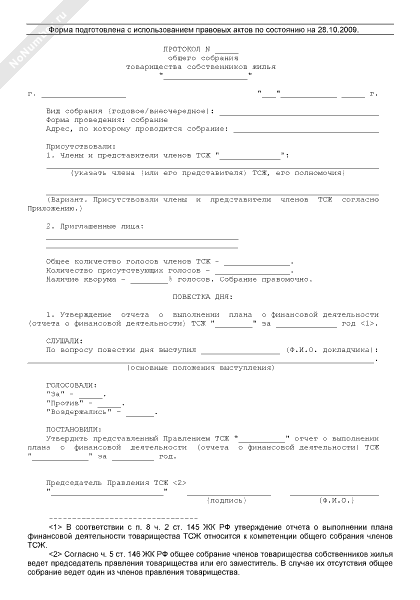 - 876Протокол общего собрания членов товарищества собственников жилья об утверждении годового плана о финансовой деятельности товарищества