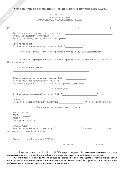 - 864Протокол общего собрания членов товарищества собственников жилья о внесении изменений в устав товарищества
